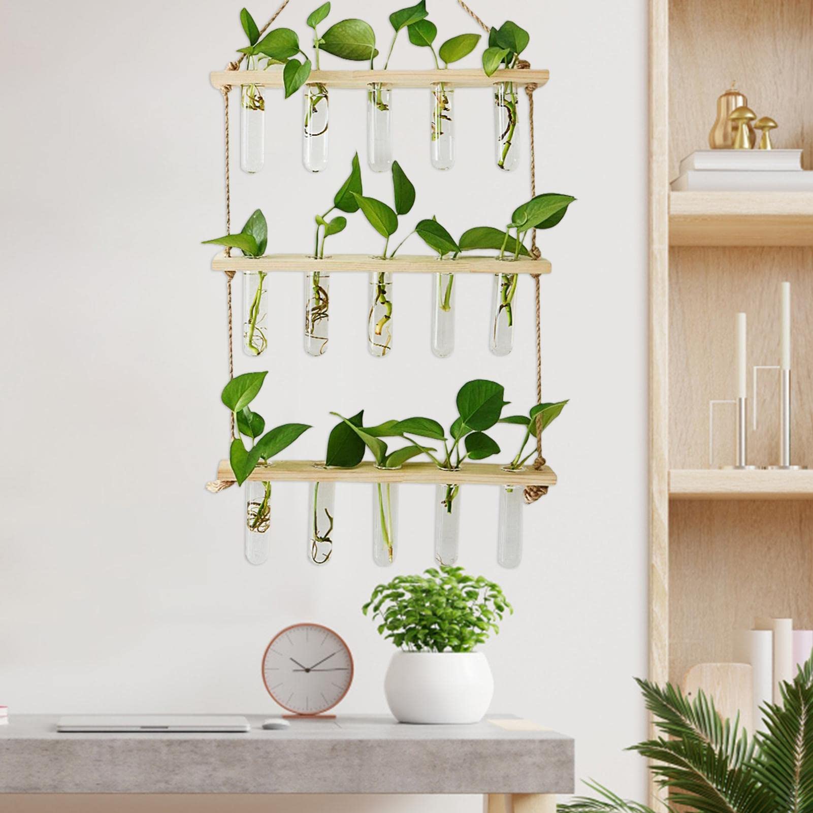 Amazon Com Pacdona Wall Hanging Glass Test Tube Planter Propagation Station Glass Vase Rack With Wood Stand Plant Terrarium Holder For Hydroponics Succulent Air Bamboo Plants With 5 Test Tube Patio Lawn